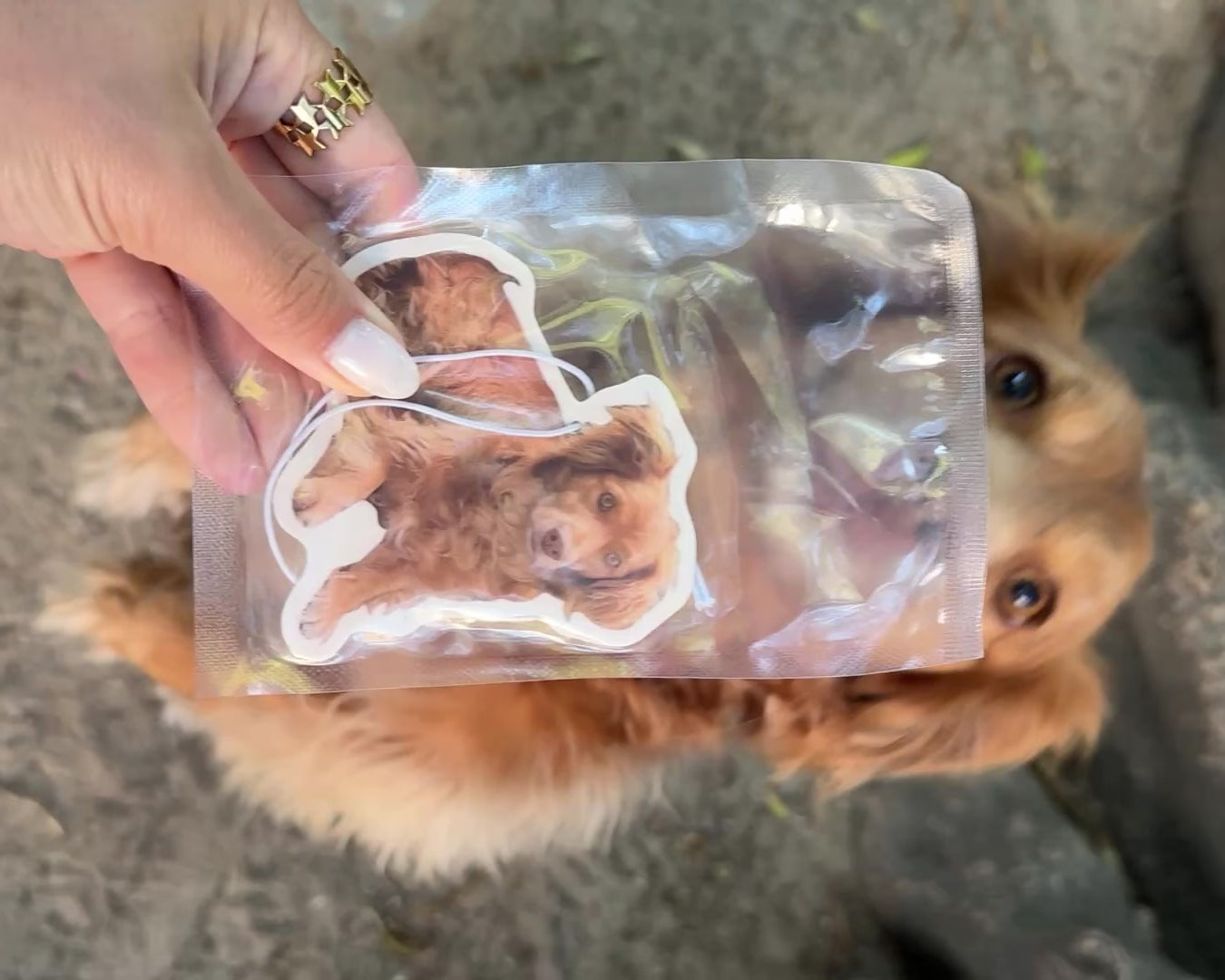 Our team will prepare, crop, cut, scent, and ship your custom air freshener – ready for you or a loved one to enjoy! 🚗💖